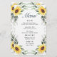 Elegante Sonnenblumen Grüne Speisekarte zum Hochze