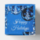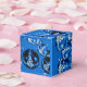 Kobaltblaue Ornamente mit silber stilisierten Weihnachtsbäumen stürzen sich gegen einen Sternenhimmel für dieses elegante Urlaubsgeschenk oder Gunst-Box. Der Text "Happy Holidays" kann an Ihre Veranstaltung angepasst werden. Die Wörter sind in einem schlichten, beinahe silbernen Skript-Schriftart.
