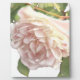 Ein wunderschönes Vintages Design von romantischen, rötlich-Elfenbeinpfirsichfarben Rose gerahmt in grünen Blätter.