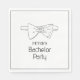 Stilvolle Bachelor-Party-Servietten personalisiert mit einem Namen. Mit einer minimalen Bogen-Krawatte-Abbildung und einem eleganten schwarzen Rahmen.