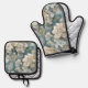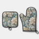 Elegante stimmungsvolle blaue Aquarellblumen Ofenhandschuh & Topflappen-Set