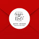Mit dem "Elegant Stylish Calligraphy Wedding Save the Date Classic Round Sticker" können Sie Ihre Nuptials auf raffinierte Weise bekannt geben. Dieser Aufkleber zeichnet sich durch elegante Kalligraphie auf einem klassischen runden Design aus und verbindet zeitlose Grazie mit modernem Stil. Aus hochwertigen Materialien gefertigt, fügt es Einladungen oder Gastgeschenke Hochzeiten eine raffinierte Touch hinzu. Seine klassische Form und sein stilvolles Drehbuch machen es zu einer perfekten Wahl für Paare, die in ihren Hochzeitsankündigungen Eleganz und zeitgenössischen Charme gewollt haben.