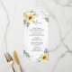 Elegante Sunflowers Grüne Hochzeitskarte Menükarte
