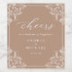 Diese eleganten Flaschenweinetiketten für Hochzeitsfeiern oder Proben werden mit Cremetexten auf taupe Basis gedruckt. Das Wort "Cheers" ist in einem eleganten Drehbuch gehalten und ist von einem klassischen Vintagen verzierten Rahmen Ecken Design umgeben. Es eignet sich perfekt für eine klassische, raffinierte Taupe, Bräunung, Beige oder neutrale Erdtönen wie Hochzeit oder Probe. Sehen Sie sich alle passenden Produkte in meiner Sammlung unten an.