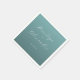 Dieses Hochzeitsservietten-Design verfügt über ein minimalistisches und elegantes Layout mit einem türkisfarbenen Hintergrund, wodurch eine ruhige und anspruchsvolle Atmosphäre entsteht. Die Namen werden in einer aufwendigen Schreibschrift dargestellt, während das Wort "UND" in einer einfachen serifenlosen Schriftart präsentiert wird, was einen Hauch von Modernität in den klassischen Charme bringt. Das Datum ist in einer sauberen, zeitgemäßen Schriftart geschrieben, die Klarheit und Eleganz betont. Perfekt für formelle Anlässe wie Hochzeiten oder Verlobungen, kombiniert dieses Design unterschwellige Raffinesse mit einem romantischen Gefühl und ist somit ideal für diejenigen, die eine verfeinerte und persönliche Note suchen.
