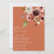 Die elegante Terracotta Floral Wedding Invitation ist ein anspruchsvolles Meisterwerk, das das Wesen einer Winterhochzeit mit einer Touch zeitloser Eleganz erfassen soll. Diese sorgfältig gestaltete Einladung verbindet nahtlos Blumenmotive, elegante Typografie und eine reiche Farbpalette, um einen atemberaubenden ersten Eindruck für jeden Tag der Braut zu schaffen. Die vorherrschende Terracotta-Set verleiht dem Ganzen eine warme und einladende Atmosphäre, die das Thema Hochzeit im Herbst perfekt ergänzt. Diese erdige Farbe symbolisiert Stabilität und Erdung und schafft ein Gefühl der Wärme, das mit dem gemütlichen Ambiente der Winterfeiern in Einklang steht. Die Terrakotta-Kulisse dient als Leinwand für zarte Aquarellfloralen und verleiht dem Gesamtbild eine Touch von Weiblichkeit und Romantik. Die Blumenelemente bilden die zentrale Bühne und zeigen aufwändige Darstellungen von Winterblüten, die einen saisonalen Flair hinzufügen. Delikate Rose, frostküss geküsste Pfannkuchen und schneebedeckte Vegetation sorgen für eine visuelle Symphonie, die die natürliche Schönheit der Winterlandschaft widerspiegelt. Die Aquarelltechnik verleiht den Blumen eine traumhafte und ätherische Qualität, die ein Gefühl von Laune und Verzauberung weckt. Das formelle Design der Einladung wird durch die elegante Typografie mit sorgfältig ausgewählten Schriftart, die von Eleganz ausgehen, noch verstärkt. Klassische und zeitlose Schrift vermittelt ein Gefühl der Formalität und sorgt dafür, dass die Einladung den Ton für eine gehobene und raffinierte Feier Set. Das Layout ist durchdacht organisiert, wobei die visuellen Elemente aufeinander abgestimmt werden, um eine harmonische und ästhetisch ansprechende Komposition zu schaffen. Zusammenfassend lässt sich sagen, dass die elegante Terracotta Floral Wedding Invitation eine faszinierende Mischung aus Winterromananz, blumengeschmückter Eleganz und zeitloser Eleganz ist. Die Terracotta-Farbpalette, die Aquarellfloralen und die formalen Gestaltungselemente vereinen sich nahtlos zu einer Einladung, die nicht nur optisch atemberaubend, sondern auch perfekt auf den Wunsch der Braut nach einer Hochzeit abgestimmt ist, die sowohl auf das Thema als auch auf mühelose Art und Weise elegant ist.