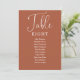 Diese eleganten Terracotta-Skripte mit doppelseitigen Sitzplakatkarten-Tischnummern sind perfekt für alle Feiern. Entwickelt von Thisisnotme©