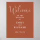 Dieses elegante, terracotta Skript Hochzeitswillkommenszeichen kann mit all Ihren speziellen Informationen für den Hochzeitstag personalisiert werden. Entwickelt von Thisisnotme©