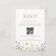 RSVP Hochzeitskarte mit Website und QR-Code mit elegantem Wildblume-Design auf neutralem Farbhintergrund.