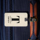 Elegantes, vollständig anpassbares Gepäckanhänger-Design mit Textur beige Hintergrund, schwarz fett Monogramm.