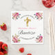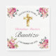 Celebre el bautismo de su hija con amigos y familiares con este elegante servilletas de papel de rezepción de bautismo floral dorado y rosa. Este krankño präsentiert eine una hermosa cruz de oro con ramos florales rosados dekorados contra un fondo blanco simple. Personaliza el texto y la fuente a tu gusto. Otras fuentes y estilos disponibles.