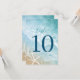 Erstellen Sie Ihre eigenen, eleganten Beachkarten mit einem wunderschönen, rustikalen DIY-Template, das einfach zu bedienen ist. Das moderne, von Raphaela Wilson illustrierte Design besticht durch wunderschöne Meereswellen am Ufer und glänzenden goldenen Sand. Diese Template-Tabellenkarten können personalisiert werden, indem Sie Ihren eigenen Kalligraphieskripttext mit einer einfachen Tischnummer hinzufügen. Wenn Sie das tropische Design weiter anpassen möchten, können Sie die Aquarellwäsche im Hintergrund ändern, sich durch die Seesterne bewegen, einige optionale weiße Plumeria-Blume entdecken und den Stil der Typografie + mehr ändern. Wenn Sie eine Hochzeit in Urlaubsort feiern, eine Sommergeburtstagsfeier am Meer, ein nautisches Jubiläum oder eine Reihe anderer Feierlichkeiten im Hawaii-Stil feiern, können diese rustikalen Aquarell-Tischnummern Dinge behalten werden, die für Gastsitze bestimmt sind. Kategorie: moderne Tafelkarten; Inhaber der Hochzeitskarte am Strand; und kalligraphische Hochzeitskarten. Party-Farben: tiefblaues Meer, helles aquamarines Grün, Türkis, Aqua, Elfenbeinbein und Weißgold.