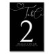 Elegante Tischnummer Moderne Script Black Wedding. Ein wunderschönes Design mit Namen und Hochzeitsdatum mit einem dekorativen ’Tisch’-Drehbuch mit Herzakzent der Liebe. Weißer Text auf schwarz. Passen Sie Ihre Tischnummer und Ihre Hochzeitsdetails an. Alle Schriftarten, Text, Farben sind anpassbar. Wir laden Sie ein, unseren Zazzle-Shop, Austen & Grace, zu besuchen, um die komplette Hochzeitssuite, passende Produkte und mehr zu sehen. Bitte kontaktieren Sie uns, wenn Sie Hilfe benötigen.