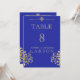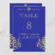 Eine elegante Tischnummer mit königsblauen und goldfarbenen Damastfarben. Diese Einladung ist Teil eines Set.