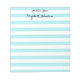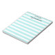 Maßgeschneidertes, modernes, schicke, stilvolles, trendiges aqua blau-weiße Streifen Muster, schöne elegante Schrift / Typografie, personalisiertes Kindergartenlehrer Zuhause Office Business, 40 leicht wegreißende Seiten Notizblock. Geben Sie einfach Ihren Namen / Firma / Firmennamen ein, um Ihre persönlichen Wünsche zu erfüllen. Sie können auch den Titel oben von "vom Schreibtisch aus" in "Eine Notiz von" oder "To Do List" oder "Tings To Do" oder "Groceries List", oder "Shopping List", "Meal Planning" oder eine andere Überschrift Ihrer Wahl ändern. Ideal für sowohl Zuhause als auch Geschäftsleute, Privatpersonen und Geschäftsleute, um Notizen, Eilmemos, Listen, To-do-Listen, Lebensmittel, Einkäufe, Speisen, Erinnerung oder eine süße Note für besondere Leute zu sammeln.