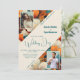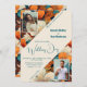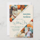 Elegante tropische Blume 2 Foto Hochzeit Einladung. Feiern Sie Ihren besonderen Tag mit dieser eleganten und romantischen Hochzeitsinie mit einem atemberaubenden Blumendesign auf einem aquamarinen und orangefarbenen Hintergrund. Diese Einladung unterstreicht die Fotos des Paares und ist für Paare geeignet, die eine einzigartige und raffinierte Art und Weise suchen, ihre Hochzeit anzukündigen. Personalisieren Sie es mit Ihren Namen, Hochzeitsdetails und Veranstaltungsinformationen, um einen zeitlosen Sake für Ihre Gäste zu schaffen.