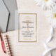 Mit dieser eleganten Einladung mit modernen Schriften, schwarzem und goldenem Text, inklusive einer künstlerischen Palme und Imitaten aus metallischem Goldrahmen, laden Sie Ihre Gäste ein, Ihren besonderen Tag zu feiern.
