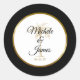 Passen Sie diese eleganten Schwarz-, Weiß- und Goldaufkleber mit Ihrer eigenen Touch an. Dieses moderne Design besticht durch die Namen und das Hochzeitsdatum von Braut und Bräutigam, eine künstlerisch goldene Palme und eine goldene Folienkante auf schwarzem Hintergrund. Wenn Sie Hilfe oder passende Artikel benötigen, kontaktieren Sie mich bitte.