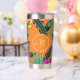 Ein elegantes Monogramm-Design mit tropischen Blume, Flamingos und tropischen Früchten auf orangefarbenem Hintergrund. Können Sie sich einen besseren Weg vorstellen, Ihren Lieblingskaffee oder Tee zu genießen? Personalisieren Sie den isolierten Schuster mit Ihrem Monogramm und machen Sie es einzigartig.