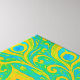Diese elegante Pfauenkunst wird Ihr Zuhause-Dekor mit türkisfarbenen und blauen Vogelfarben auf einem gelben gemusterten Hintergrund aufheitern. Bild generiert mit KI.