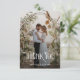 Moderne, elegante Hochzeit danke Karte. Design-Features Foto, Typografie Skript-Overlay danke in weißen Schriften, Namen, Hochzeitstag auf der Vorderseite. Personalisieren Sie Ihre Nachricht und ein anderes Foto auf der Rückseite.