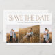 Eine elegante Typografie 3 Foto Collage Wedding Save the Date mit einem modernen und einfachen Layout auf der Vorderseite. Die Rückseite hat weitere Details. Klicken Sie auf die Schaltfläche Bearbeiten, um dieses Design anzupassen.
