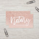 Eine elegante moderne, stilvolle Notarvermittler-Geschäftskarte mit eleganter Skripthandbeschriftungs-Arttypographie im Weiß auf einem Imitat-Rosen-GoldGlitter und ein Pastell erröten rosa trendy und eleganter Hintergrund. Wenn Sie irgendeine Kundenbezogenheit benötigen, zögern Sie nicht, wenn Sie mit mir in Verbindung treten