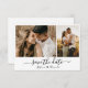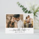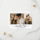 Modernes Minimalistisches Typografie Script 2 FotoCollage Speichern Sie die Datumskarten in Schwarzweiß. Dieses romantische, zarte Design ist perfekt für moderne Hochzeiten. 2 Grid Foto Collage, eine skurrile Kalligraphie in handgeschriebenem Stil Swash Schwanz Schriftart Kalligraphie oder Typografie Skript und eine Liebe Herz. Einfach mit Ihren Hochzeitsdetails und Fotos personalisieren.