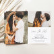 Hochzeit Speichern Sie die Datumskarten, die ein Foto auf der Vorder- und Rückseite haben. Die Save the Date-Karten enthalten eine moderne, handgeschriebene, kursive Schriftzeichen-Typografie, die elegant, einfach und modern nach einem einfachen Hochzeitstag-Fest zu verwenden sind.