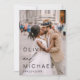 Hochzeit Speichern Sie die Datumskarten, die ein Foto auf der Vorder- und Rückseite haben. Die Save the Date-Karten enthalten eine moderne, handgeschriebene, kursive Schriftzeichen-Typografie, die elegant, einfach und modern nach einem einfachen Hochzeitstag-Fest zu verwenden sind.