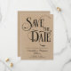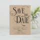 Elegante Typografie verspricht Erneuerungen Save the Date Karte zeigt Typografie Drehbuch ''Save the Date'' in schwarzer Schrift auf einem Imitat kraft Hintergrund. Personalisieren Sie Ihre Daten und Daten.