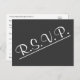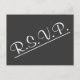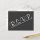 Dieses elegante, respektable R.S.V.P Postkartendesign weist vorne die Meldung "R.S.V.P." auf. Es enthält auch ein benutzerdefiniertes UAWG auf der Rückseite, das der Empfänger ausfüllen kann, sowie eine benutzerdefinierte Adresse, an die die ausgefüllten RSVP-Karten gesendet werden sollen. RSVP-Karten wie diese könnten vielleicht genutzt werden, um herauszufinden, wer an einem Party zum Hochzeitstag, einer Abschlussfeier, einer Babydusche oder einer anderen Veranstaltung teilnehmen wird.