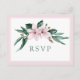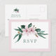Elegantes und einfaches Hochzeitsdesign. Die magnolischen Blume in Aquarelltönen, die rosafarbenen Farbtöne von hell bis tief in Lila, die grünen Eukalyptus-Blätter, das einfache botanische Bouquet. Elegante Schriftart-Kombination. Dusty rosa (staubige Rose) Grenze. Zeitloses klassisches Farbthema: staubiges Rosa und Grün. Grüne Schrift. Ideal für Frühjahrshochzeit, Blumenhochzeit, moderne, elegante Hochzeit.