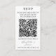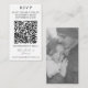 RSVP-Karten mit einem klassischen Schwarz-Weiß-Foto des glücklichen Paares auf der Rückseite, mit einem QR-Code auf der Vorderseite. Um Text, Foto und qr zu bearbeiten, klicken Sie auf die Schaltfläche Personalisieren.