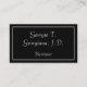 Dieses einfache, elegante und moderne Design der Visitenkarte zeichnet sich durch einen schwarzen Hintergrund und eine zweizeilige weiße Grenze aus. Es könnte von einem berufliche wie einem Rechtsanwalt, Anwalt oder Anwalt verwendet werden. Name, Beruf und Kontaktdaten können personalisiert sein.