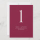 Helfen Sie Ihren Gästen mit dieser eleganten, modernen burgundischen Tischnummer, ihren Tisch zu finden. Doppelseitige Karten. Löschen Sie den Platz um sich herum, um Ihnen die Freiheit zu geben, einen Tisch oder Rahmen zu verwenden. Attraktiver burgundischer Beerenhintergrund und weißer Text. Mehrere Farboptionen. Passende Karten und Menüs für Sitze. Teil unserer Kollektion "Burgundy Red and Berry Wedding and Event Products" mit einer Vielzahl von Produkten zur Koordination.