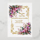 Elegante, schöne und romantische Orchideenblumen Hochzeitsvorlage, Diese Hochzeitseinladung ist eine atemberaubende Mischung aus Eleganz und Lebhaftigkeit, perfekt für ein Paar, das eine Aussage machen möchte. Das Design ist in einem weißen, unberührten Hintergrund mit goldenen, blumengeschmückten Rahmen gehalten und verleiht ihm eine luxuriöse Eleganz. Die obere linke und untere rechte Ecke ist mit üppigen, mehrfarbigen Blumen in Rosa-, Lila- und Grüntönen geschmückt. Diese blumengeschmückten Arrangements sind nicht nur auffällig, sondern strahlen auch ein romantisches Gefühl der Schönheit aus, das durch zarte goldene Akzente, die mit den Blüten verwoben sind, noch verstärkt wird. Dieses elegante und lebendige Design verbindet klassische Elemente mit moderner Blumenkunst zu einer unvergesslichen Einladung. Das Gleichgewicht zwischen goldenen Akzenten und farbenfrohen Blumen vor weißem Hintergrund macht es zeitlos und für jedes Hochzeitthema geeignet.
