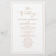 Dieses elegante Hochzeitsprogramm aus unserer Gold Minimalistisch Wedding Kollektion zeichnet sich durch ein einfaches Design und einen modernen Script-Schriftart aus. Ideal für jede Jahreszeit. Um vorzeitige Änderungen vorzunehmen, wählen Sie Personalisieren -> Bearbeiten mit dem Entwurfstool.