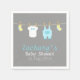 Eine niedliche Serviette für Babydusche Party für Babyjungen! Die Minikleidung und die Accessoires sind mit gelben Babysocken, einem weißen Baby-Jumpsuit mit Krawatte und pastellblauen Overalls mit Tasche und Holzpegs ausgestattet. Die Pastellfarben heben sich nur vom grauen Hintergrund ab und verleihen ihm Eleganz. Personalisieren Sie einfach mit Ihrer Party-Nachricht.