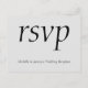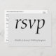 Dieses elegante UAWG Postkartendesign mit der Meldung "uAwg" auf der Vorderseite und einer personalisierten Event-/Veranstaltungsbeschreibung. Es enthält auch ein benutzerdefiniertes UAWG auf der Rückseite, das der Empfänger ausfüllen kann, sowie eine benutzerdefinierte Adresse, an die die ausgefüllten RSVP-Karten gesendet werden sollen. RSVP-Karten wie diese können verwendet werden, um herauszufinden, wer an einem Hochzeitsempfang, einem Party für den Ruhestand, einer Abschlussfeier, einem Party zum Hochzeitstag oder einer anderen Feier teilnehmen wird.