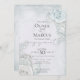 Erleben Sie die Verlobung mit den blühenden Einladungen - blass-blauen und weißen Rosen gepaart mit blauen Blättern und Glitzern auf einem Vintag blauen grauen Wasserfarbenhintergrund - perfekt für eine romantische Engagement Party Einladung. Die Script-Kalligraphie wird mit einem zeitgenössischen Schriftart kombiniert, was ihr eine moderne Anziehungskraft verleiht. Dies ist Teil einer Sammlung von Hochzeitsartikeln mit passendem Hochzeitszubehör, erstellt von © WhimsicalArtwork™ für den BarefootBride™