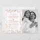 Elegante, moderne und schicke Imitate Rose Gold und trendige weiße Blumen Handgezeichnete Muster, Verlobung Ankündigungskarten. Dieses klassische und raffinierte Design eignet sich perfekt für das elegante, trendige und stilvolle Ehepaar. Personalisieren Sie Ihre eigene Nachricht auf der Vorderseite und ein individuelles Monogramm auf der Rückseite. Das gesamte Foto-Druckdesign.