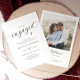 Laden Sie Gäste ein, das glückliche Paar mit diesen eleganten Verlobungseinladungen zu feiern. Entworfen in einem modernen minimalistischen Schwarz-Weiß-Stil, zeichnen sie sich durch stilvolle Skript-Typografie und ein einfaches, anspruchsvolles Layout aus. Das Foto des Paares auf der Rückseite verleiht eine persönliche Note und macht diese stilvollen und zeitlosen Einladungen perfekt für die Ausrichtung der besonderen Feier des verlobten Paares.