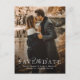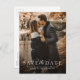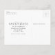 Teilen Sie die Neuigkeiten Ihrer Verlobung und der bevorstehenden Ehe mit dieser vertikalen-Postkarte mit einem Foto, die eine elegante Art Behandlung in Weiß bietet. Der klassische Text mit etwas modernem Ambiente befindet sich am unteren Rand eines vertikalen Fotos. Auf der Rückseite können Sie Ihre persönliche Nachricht mit Details für Ihre Gäste und Ihre Hochzeitswebsite senden.