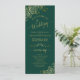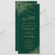 Dieses wunderschöne Hochzeitsprogramm besticht durch ein elegantes Design mit Goldtext auf smaragdgrünem Hintergrund und zartem goldgelbem Imitat mit Foliollen und Wirbel in den Ecken. Die Titel sind in extravaganter Skriptkalligraphie geschrieben, und es gibt Platz für Ihre Zeremonie und Hochzeitsfeier Details, sowie ein kurzes Dankeschön für Ihren Gast. Ein wunderbarer Weg, um Ihre Freunde und Familie zu Ihrer Hochzeitsfeier zu begrüßen.