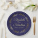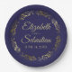 Diese Teller sind in marineblau gehalten und zeichnen sich durch ein schlichtes und dennoch elegantes Design aus. Die verzierten Imitate verzieren den goldenen Blumenrand und den Platz, um die Namen des Ehepaares und den Hochzeitstag einzutragen. Vollständig anpassbar. Ideal für ein Brautparty, einen lässigen Empfang, ein Probe-Dinner oder eine andere Hochzeitsveranstaltung.