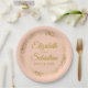 Diese Teller aus Korallen, Pfirsich oder hellorangefarbenem Papier zeichnen sich durch ein schlichtes und elegantes Design aus. Die verzierten Imitate verzieren einen goldenen Blumenrand und Platz, um die Namen des Ehepaares und das Hochzeitstag einzutragen. Vollständig anpassbar. Ideal für ein Brautparty, einen lässigen Empfang, ein Probe-Dinner oder eine andere Hochzeitsveranstaltung.