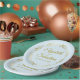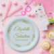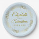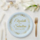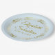 Diese Teller mit blass staubblauer Farbe zeichnen sich durch ein schlichtes und dennoch elegantes Design aus, das durch ein verziertes Imitat mit einer goldenen Blumendecke und Platz zum Eingeben der Namen des Ehepaares und des Hochzeitsdatums ergänzt wird. Vollständig anpassbar. Ideal für ein Brautparty, einen lässigen Empfang, ein Probe-Dinner oder eine andere Hochzeitsveranstaltung.
