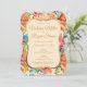 Feiern Sie Ihren Hochzeitstag mit dieser Viktorianischen inspirierten Hochzeitseinladung. Ein farbenfrohes und dynamisches, nahtloses Muster mit eleganten roten Pfannkuchen, türkisfarbenen Gelb-, Orange- und Grünbotanikalen. Gold und cremefarbene Klammer-Rahmen verschachteln die Hochzeitsdetails im goldenen Script-Schriftart und vervollständigen dieses Vintage Design.