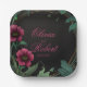 Elegante viktorianische, dunkelgrüne, rosafarbene Blumenpapiere Teller. Ideal für jeden Anlass.